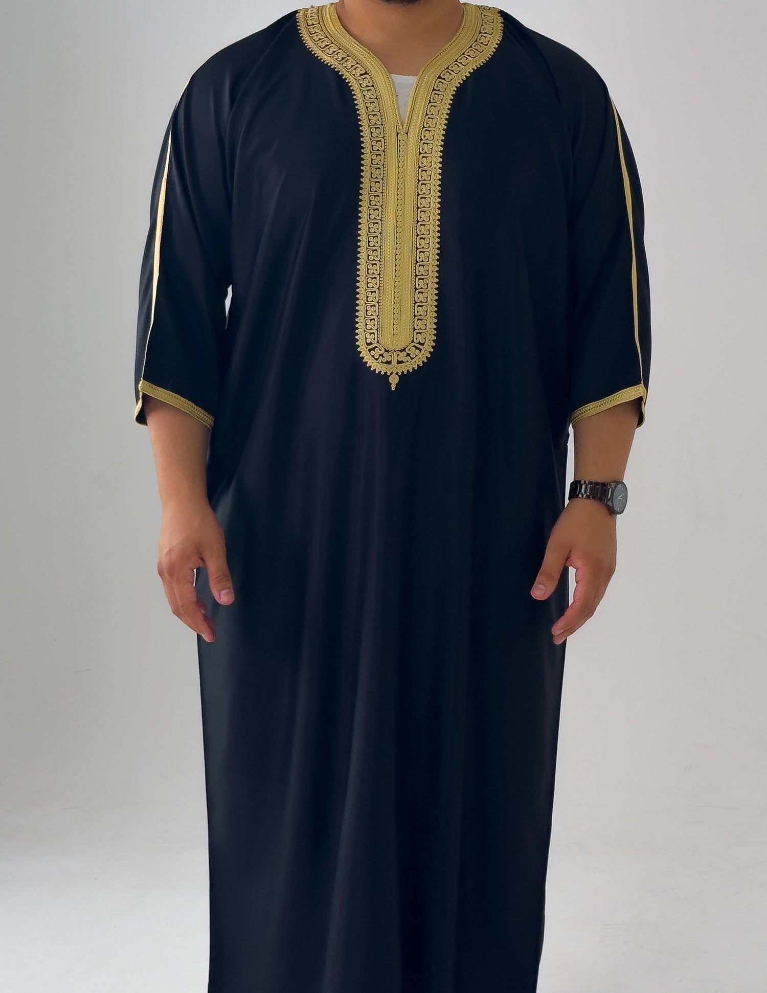 Black & Gold Moroccan Thobe Al-Hadiyah Collection
