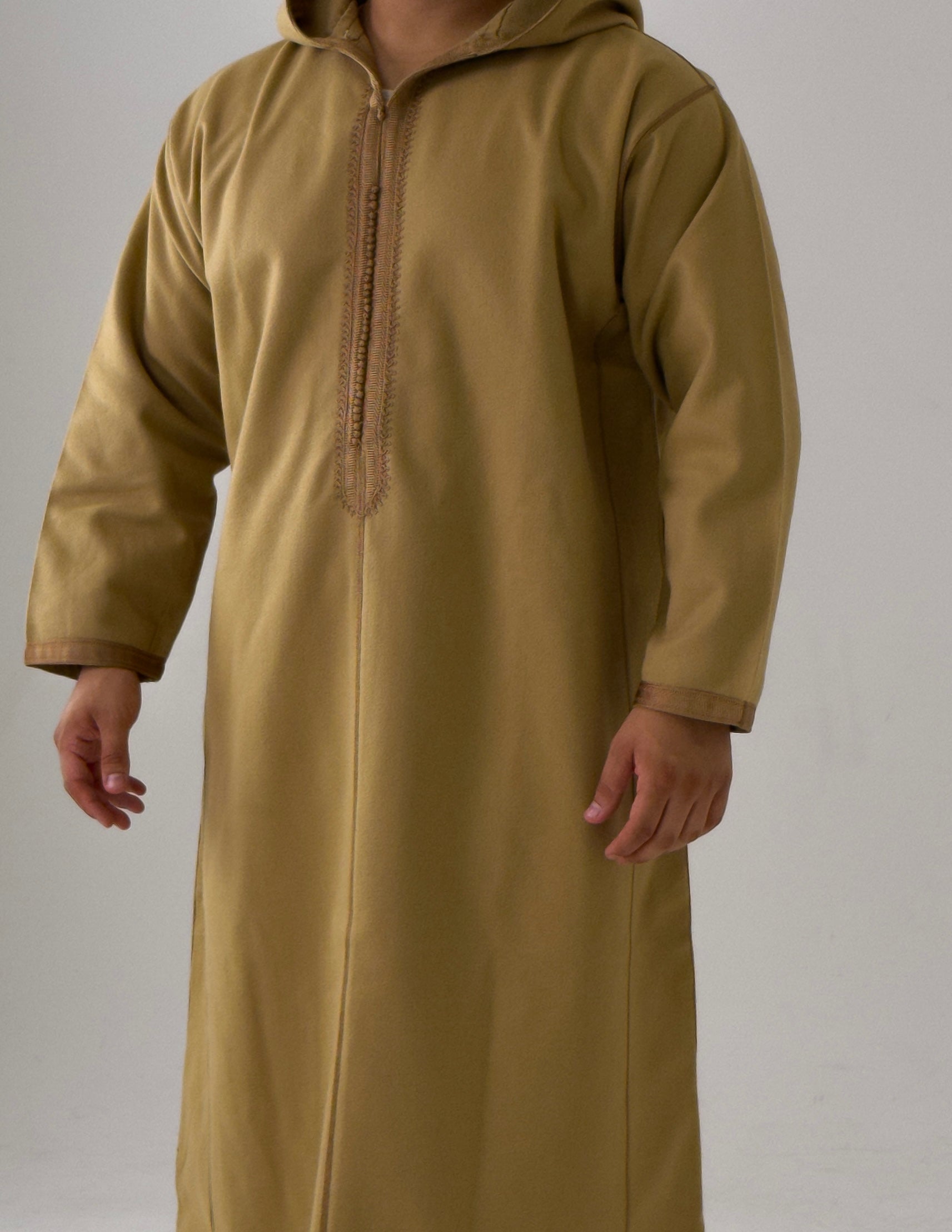What truly sets this wool apart is its durability and resistance to bobbles, ensuring a pristine look even with frequent wear. The richness of the fabric, combined with its natural insulating properties, provides unmatched warmth without feeling heavy. Handcrafted in Morocco with authenticity at its core, this Djellaba is a true reflection of heritage, craftsmanship, and luxury.