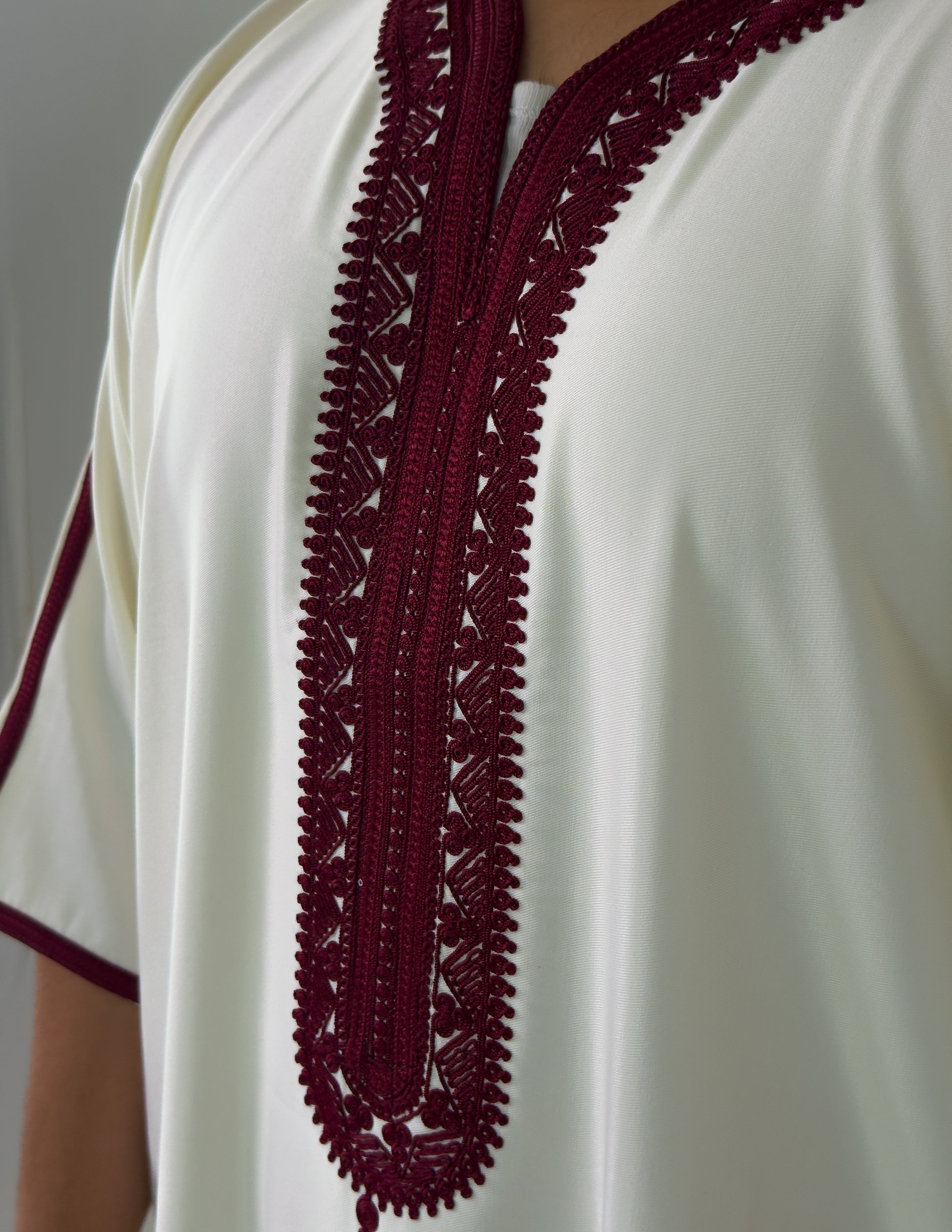 White & Red Moroccan Thobe Al-Hadiyah Collection